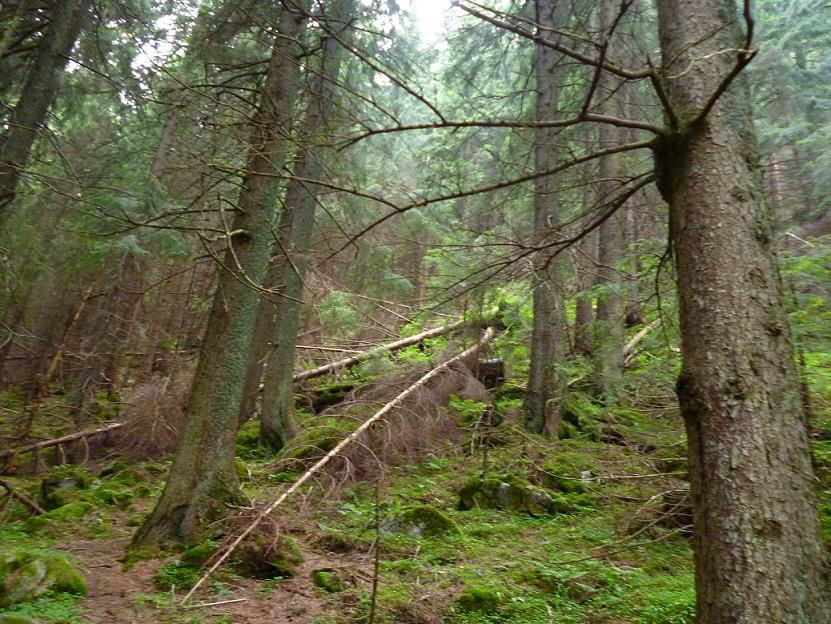 Niestety w pewnym momencie wspinaczki zaczyna dziać się to czego bardzo się obawiałem. Prawe kolano nie wytrzymuje obciążenia i dwudniowej wędrówki. Każdy kolejny krok zaczyna wiązać się z ostrym bólem w kolanie. Mimo tego postanowiłem pokonać jeszcze kilkanaście metrów w górę. Chciałem dotrzeć chociaż do Buli pod Rysami, ale zarówno widoczność jak i coraz większy ból w kolanie sprawiają, że zatrzymuję się żeby podjąć decyzję co dalej.
